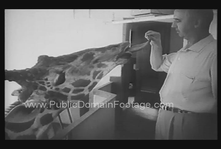 6 seconds of a giraffe being fed by its zoo trainer.